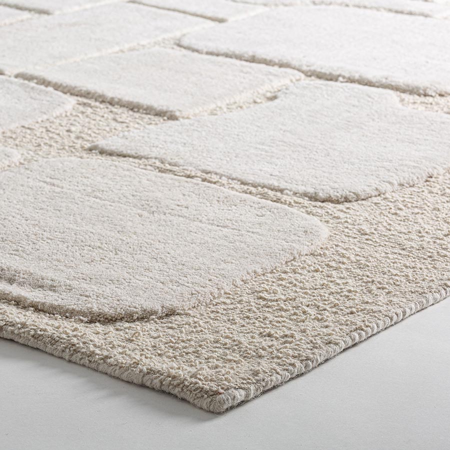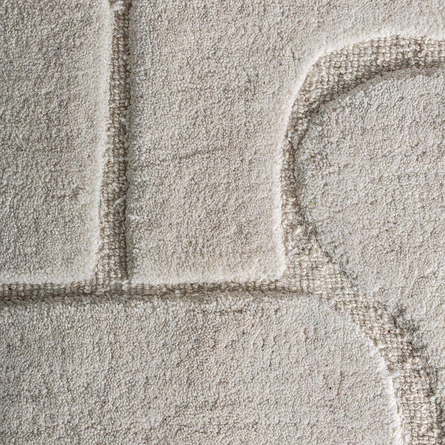 Alfombra Amelie de estilo clásico fabricado en lana en color beige combinado con algodón.