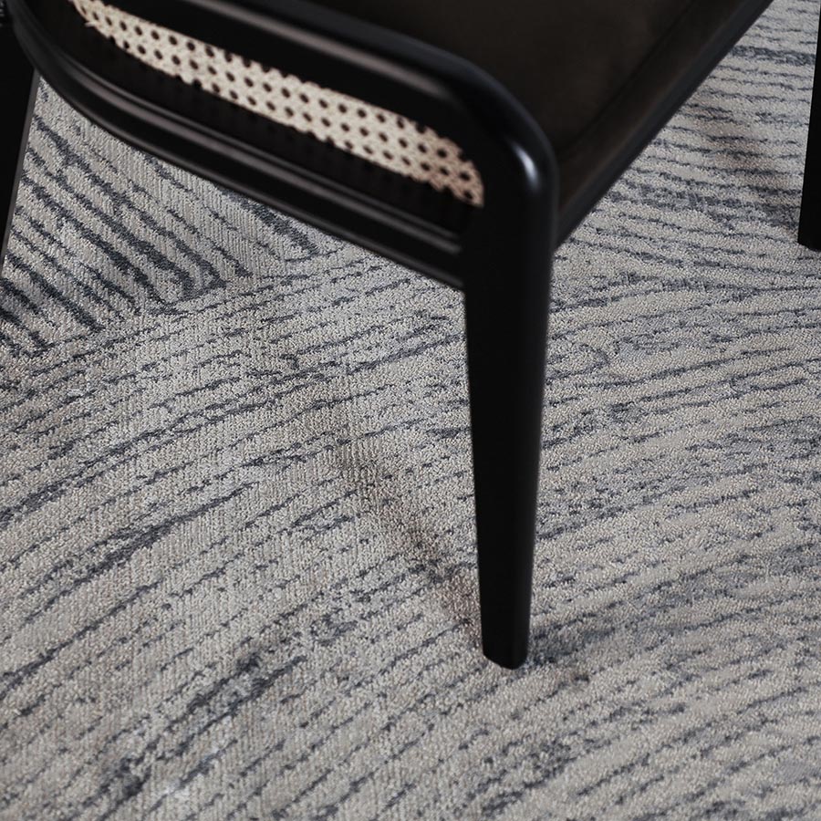 Alfombra bakea de estilo colonial fabricado en viscosa en color tonos de azul combinado con poliéster.