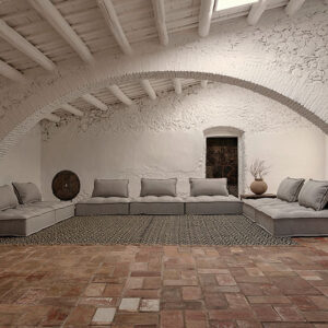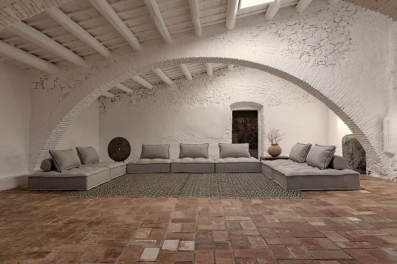 Alfombra Ghanima de estilo colonial fabricado en yute en color beige con acabado teñido.