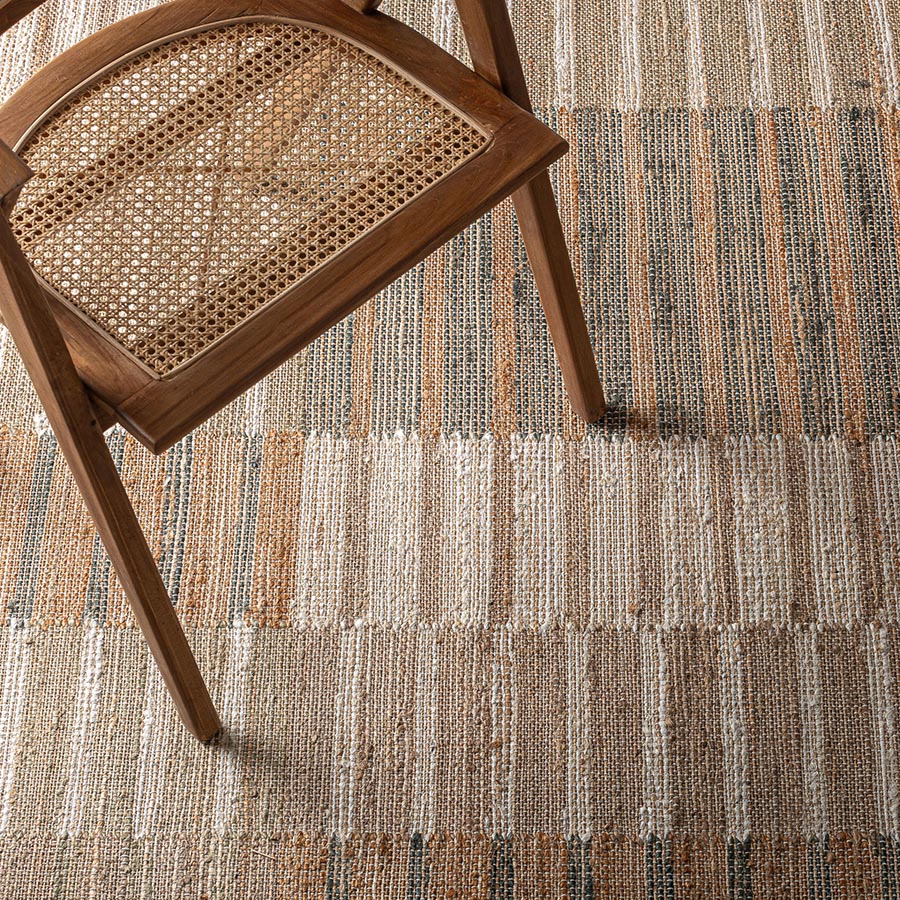 Alfombra Kaela de estilo clásico fabricado en yute en color tonos neutros combinado con algodón.