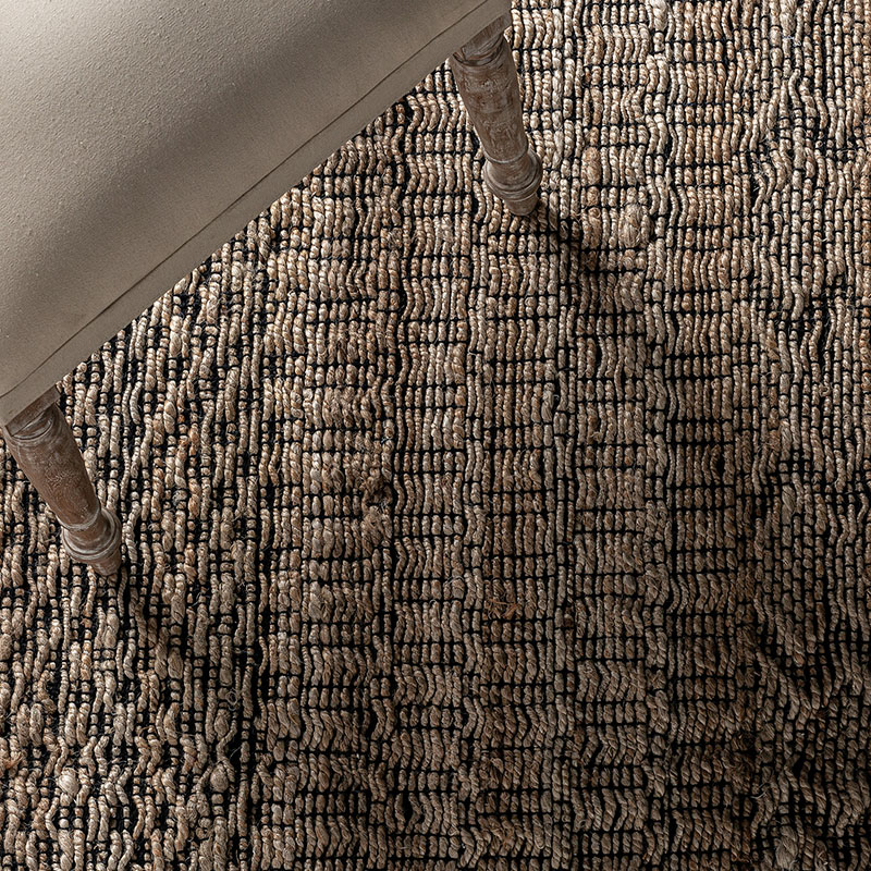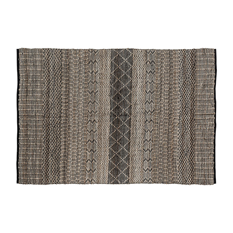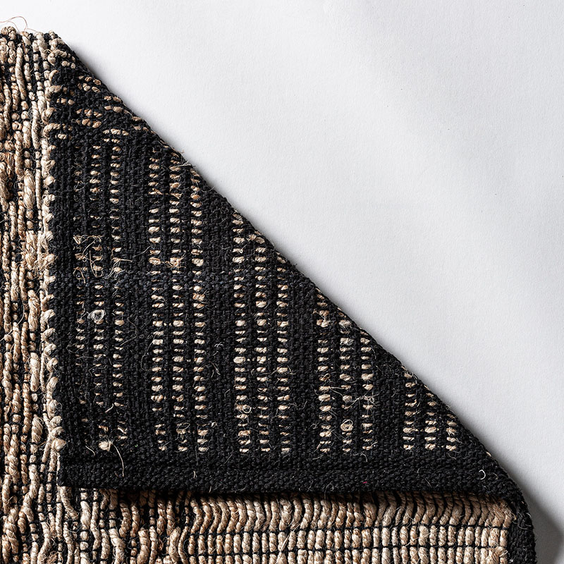 Alfombra Kelia de estilo vintage fabricado en algodón en color negro combinado con cáñamo en color natural.
