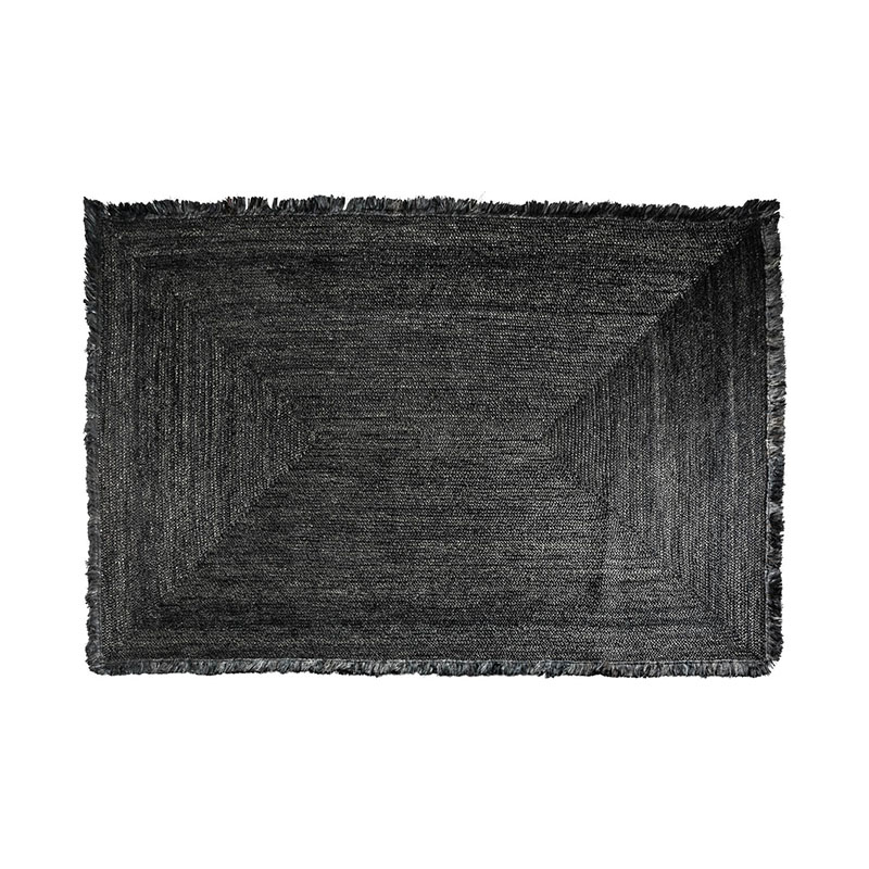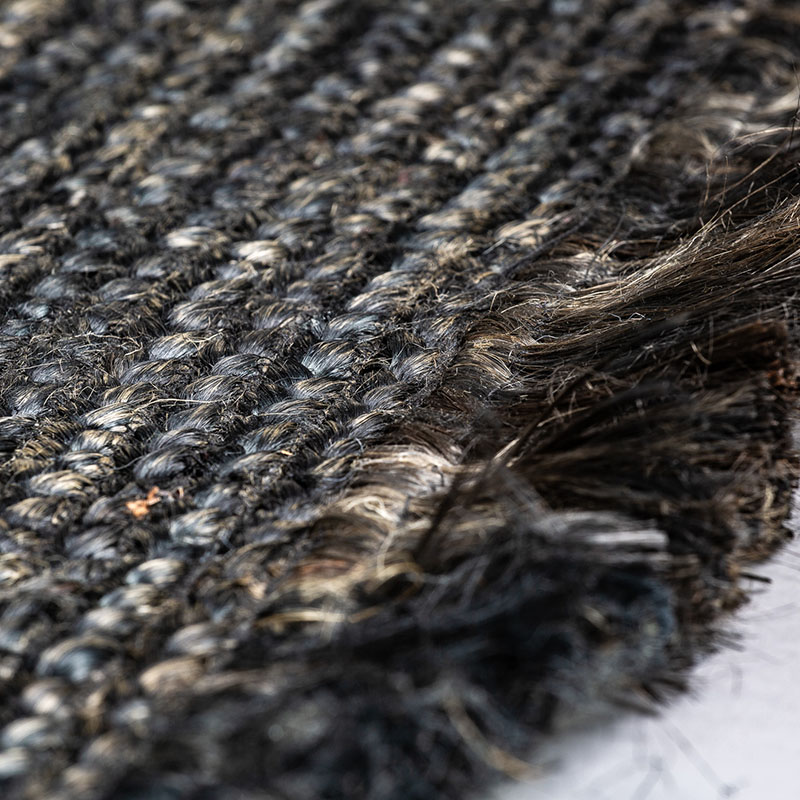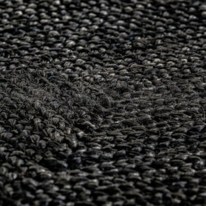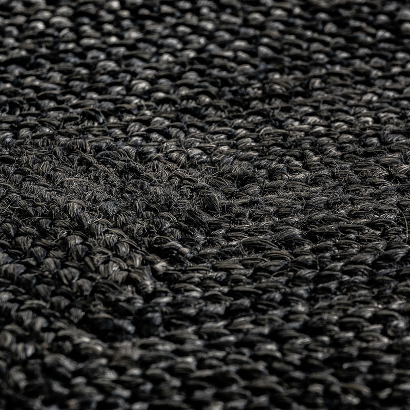 Alfombra Kisai de estilo colonial fabricado en yute en color negra con acabado teñido.