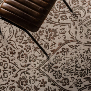 Alfombra rectangular lidiane, en color beige, de estilo clásico. Fabricado en viscosa.