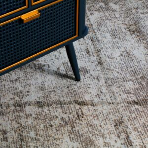 Alfombra rectangular de tonos marrones hecha de viscosa y algodón para conseguir un aspecto suave y cálido para cualquier ambiente del hogar. La peculiaridad no solo reside en su diseño único sino en su producción: tejida a máquina con pelo corto con una densidad de 750.000/m2 . Se puede lavar a mano fácilmente o con aspiradora y cepillar para conseguir un aspecto esponjoso y suave. Además es apta para suelo radiante. 200×300 cm