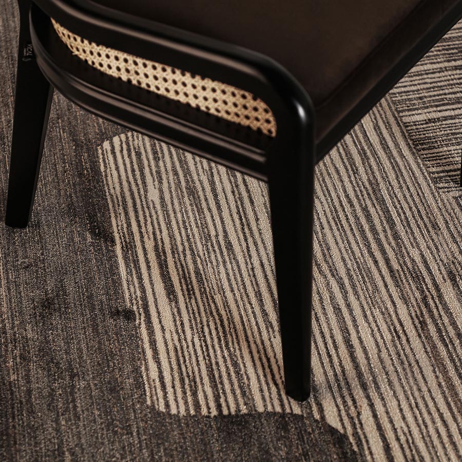 Alfombra shara de estilo colonial fabricado en viscosa en color gris combinado con poliéster.