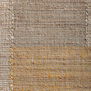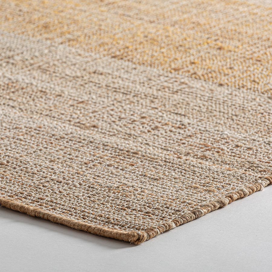 Alfombra Takara de estilo clásico fabricado en yute en color gris combinado con algodón en color ocre en color beige.