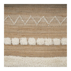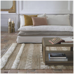 La alfombra TANGER invita a viajar y combina poéticamente el trenzado de yute natural y los suaves motivos de lana.