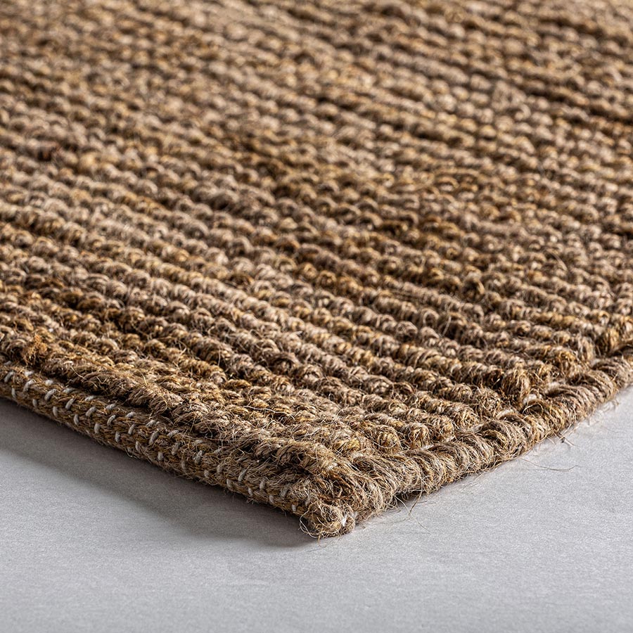 Alfombra Beryl de estilo clásico fabricado en yute en color beige combinado con algodón y fibra natural.