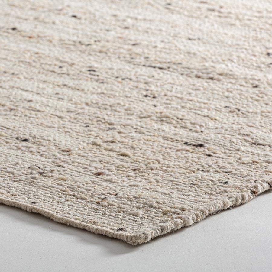 Alfombra Tsure de estilo clásico fabricado en lana en color beige combinado con algodón.