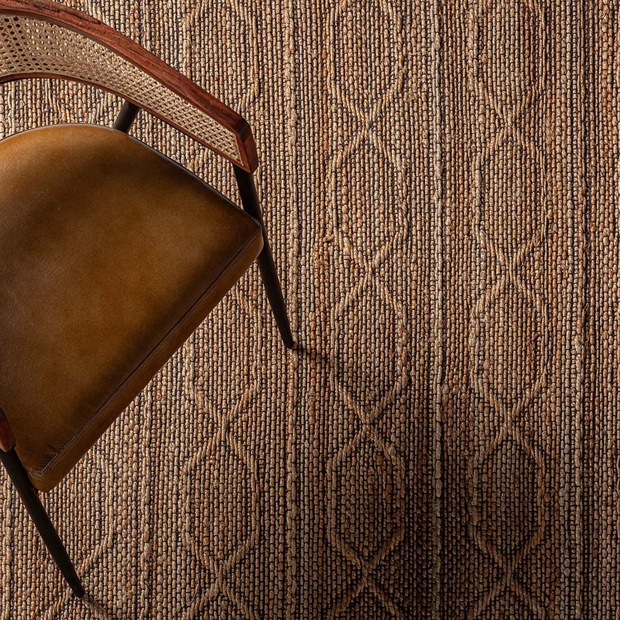 Alfombra tudia de estilo clásico fabricado en yute en color tonos en marrón combinado con algodón.
