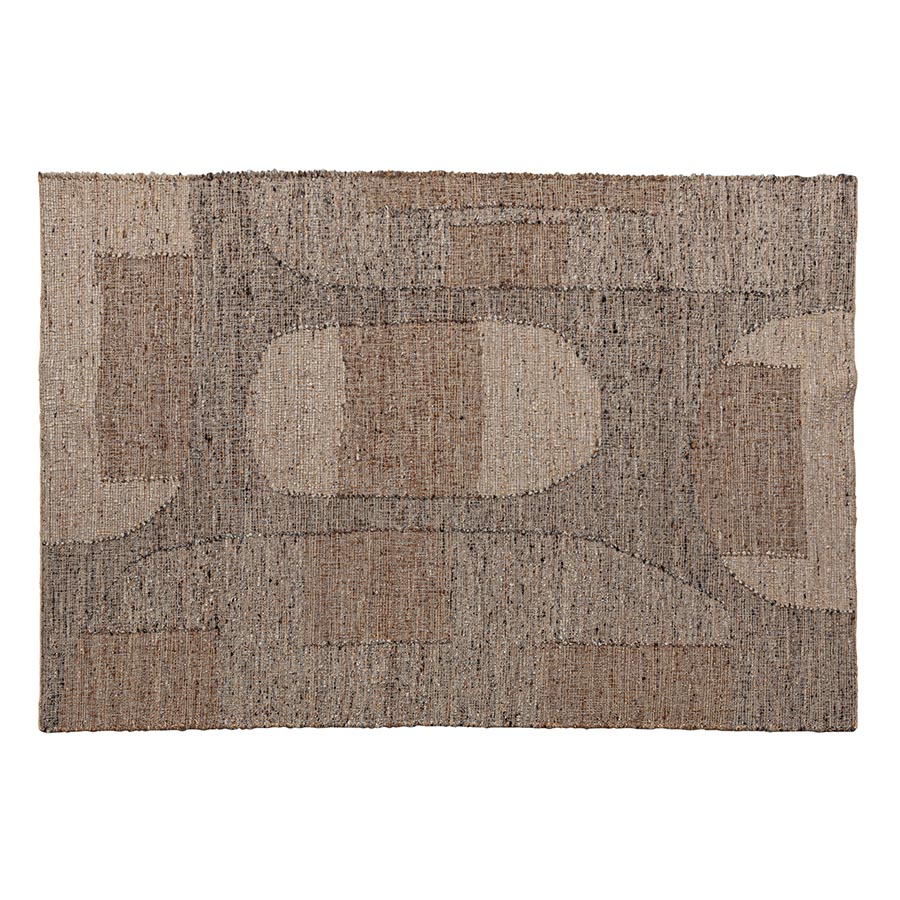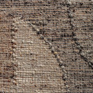 Alfombra Yaeka de estilo clásico fabricado en lana en color tonos neutros combinado con yute y algodón.