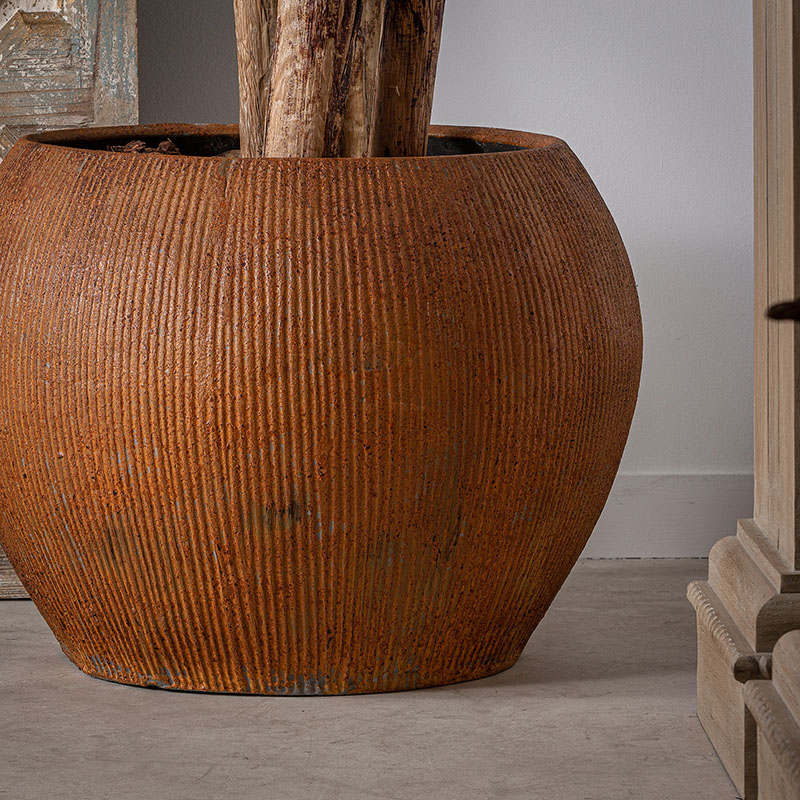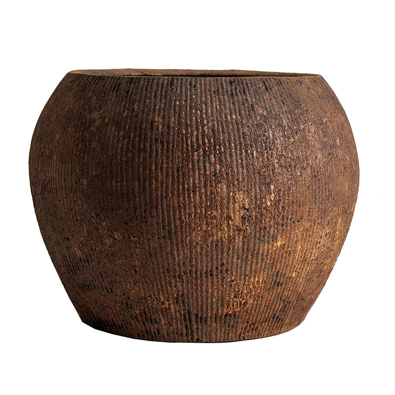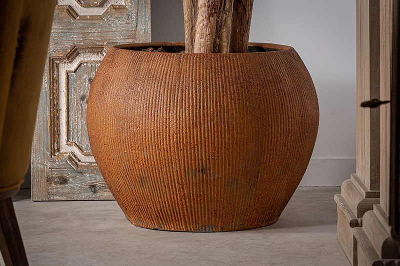 Ánfora asclepia, en color tonos en marrón, de estilo contemporáneo. Fabricado en terracota.