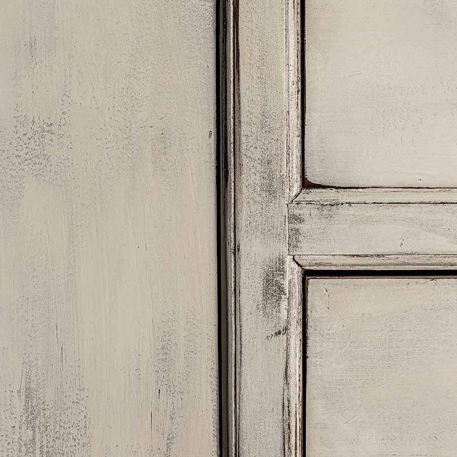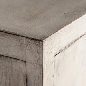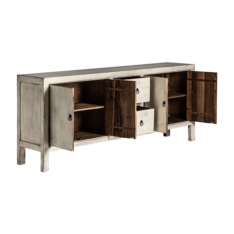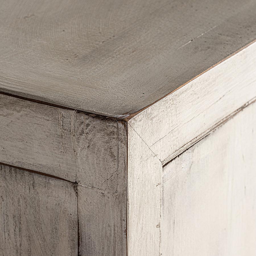 Aparador Baratti de estilo vintage fabricado en madera de pino reciclado en color blanco roto con acabado decapado.