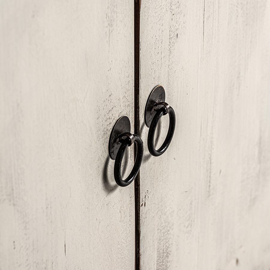 Aparador Malung de estilo rústico fabricado en madera tropical en color blanco con acabado envejecido en color marrón.