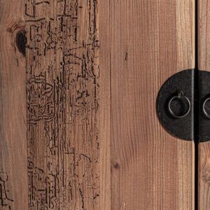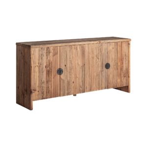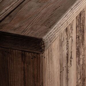 Aparador breive de estilo rústico fabricado en madera de pino reciclado en color marrón con acabado envejecido.