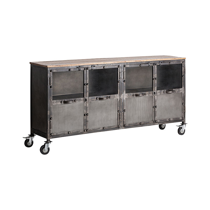 Aparador lavik de estilo industrial fabricado en madera de pino reciclado en color marrón.