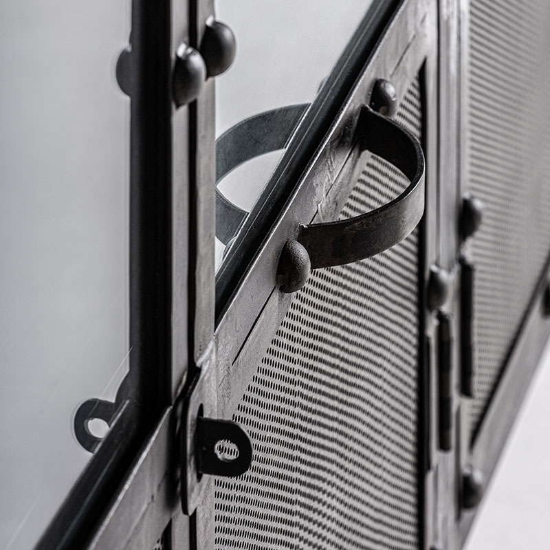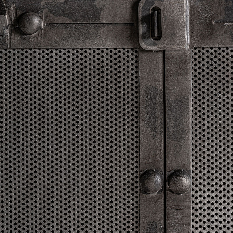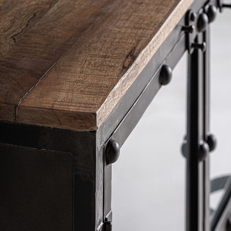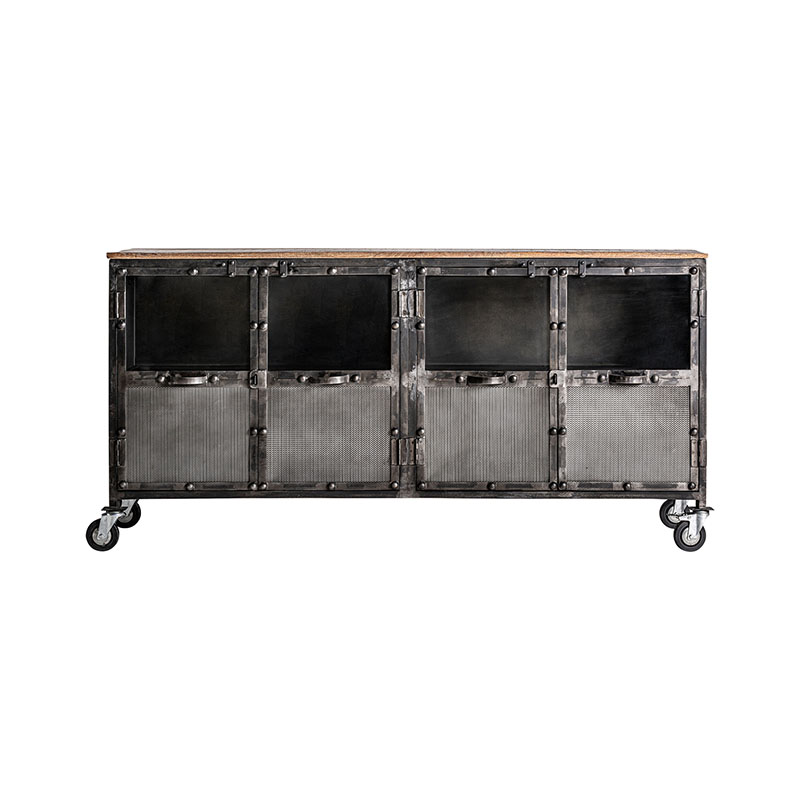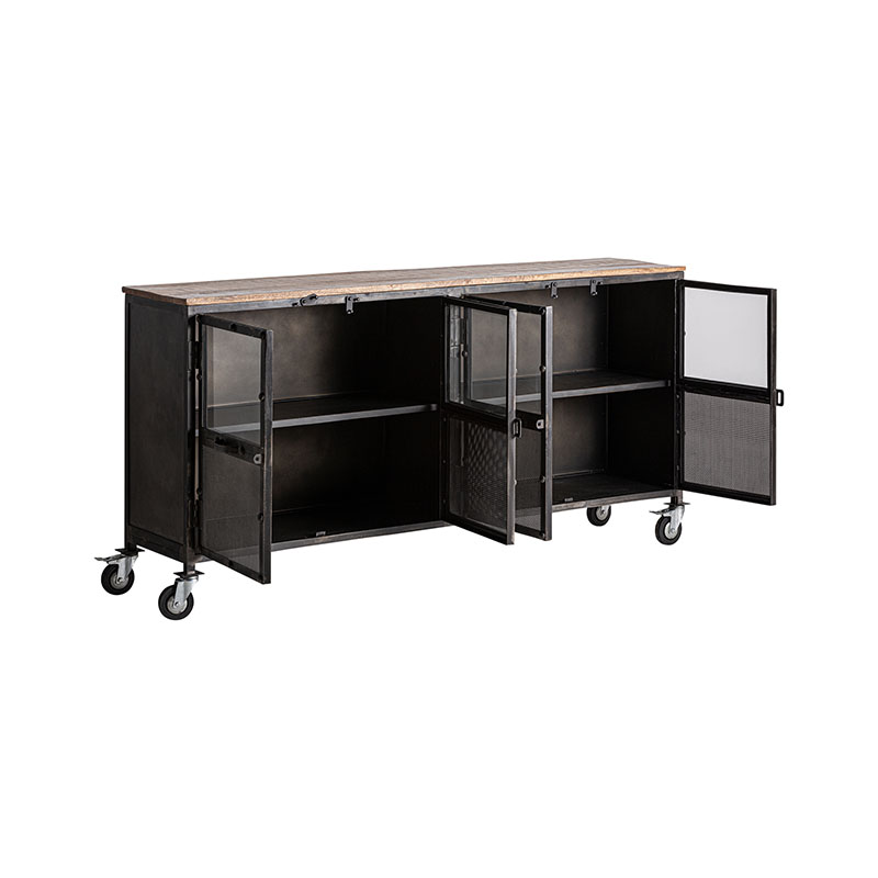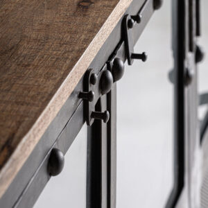 Aparador diou, en color negro, de estilo industrial. Fabricado en madera de mango, combinado con hierro.