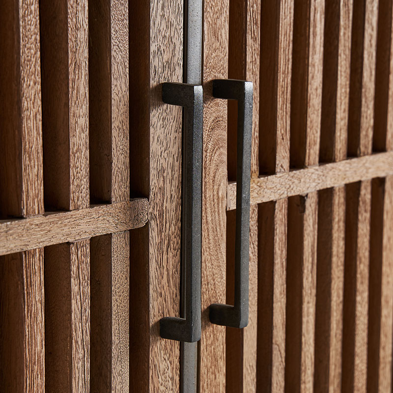 Aparador holeby de estilo nórdico fabricado en madera de mango en color marrón combinado con ratán y madera dm. Producto desmontable.