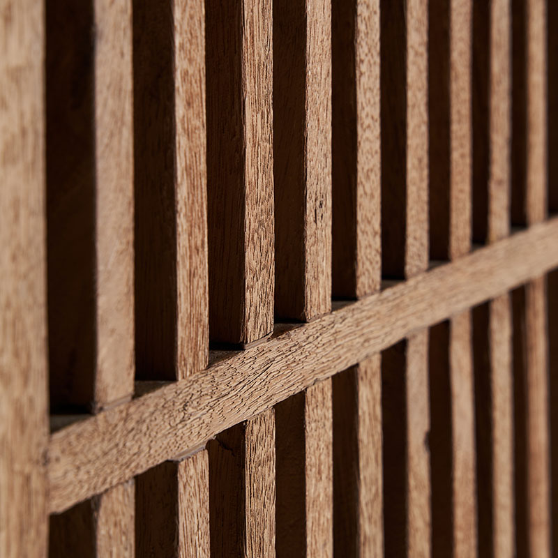 Aparador gondorf de estilo nórdico fabricado en madera de mango en color marrón combinado con cáñamo. Producto desmontable.