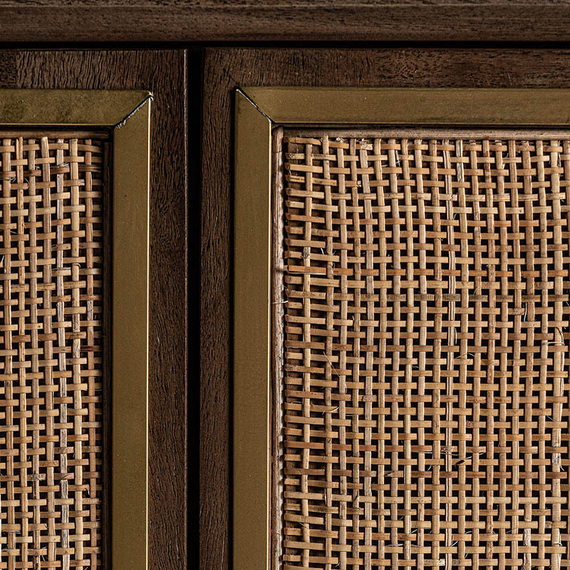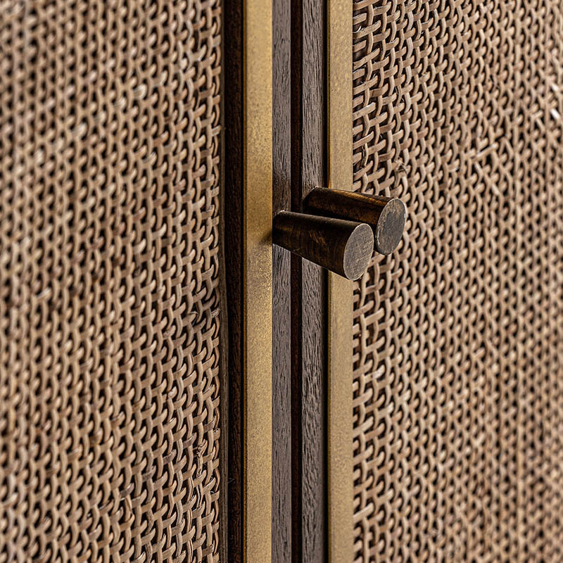 Aparador gondorf de estilo nórdico fabricado en madera de mango en color marrón combinado con cáñamo. Producto desmontable.