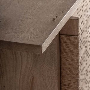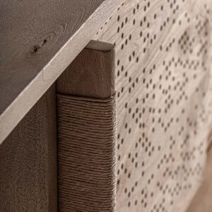 Aparador gondorf de estilo nórdico fabricado en madera de mango en color marrón combinado con cáñamo. Producto desmontable.
