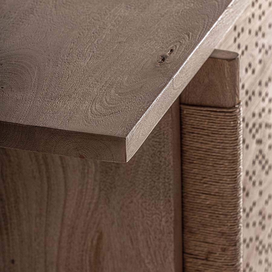 Aparador Jacquard de estilo contemporáneo fabricado en madera de mango en color marrón claro.