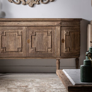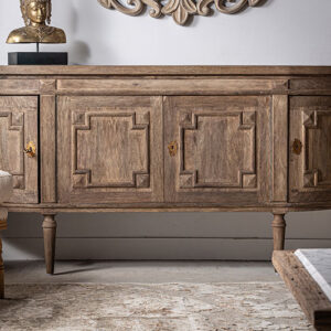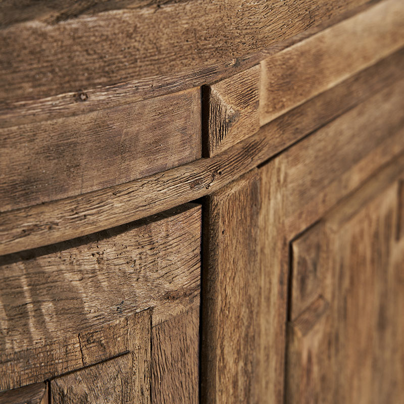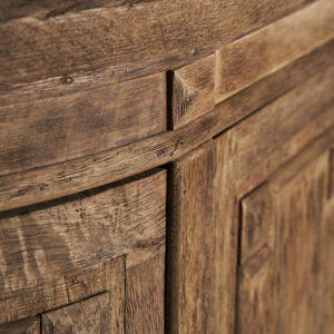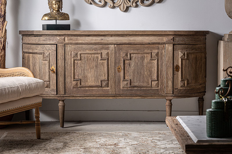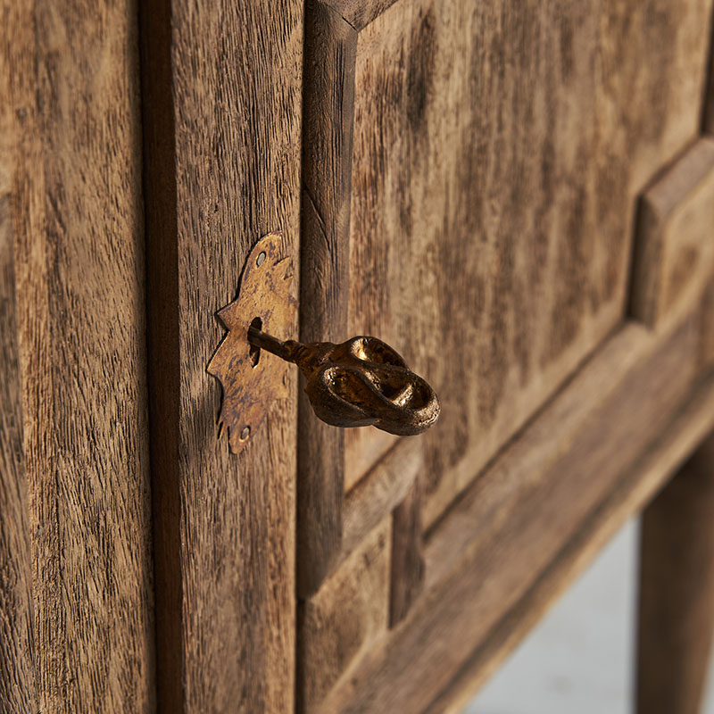 Aparador lieurey de estilo colonial fabricado en madera de mango en color marrón combinado con hierro.
