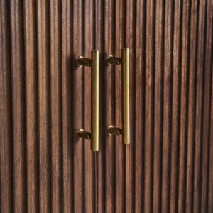 Aparador Mesia de estilo art deco fabricado en madera de mango en color marrón en color oro.