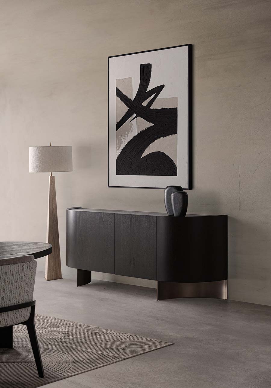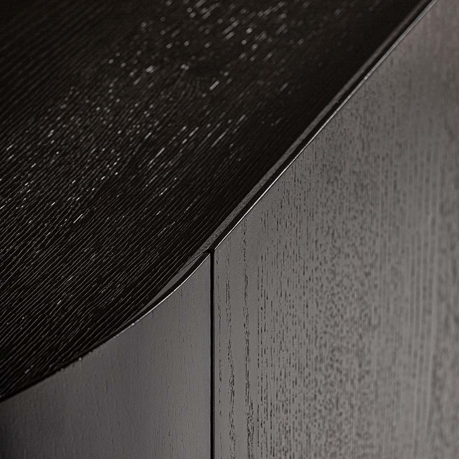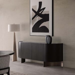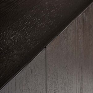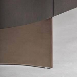 Aparador Neuvic de estilo art deco fabricado en chapa de roble en color marrón combinado con madera contrachapada y acero inoxidable en color oro con acabado mate. Producto desmontable.