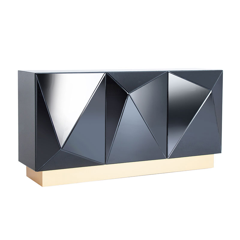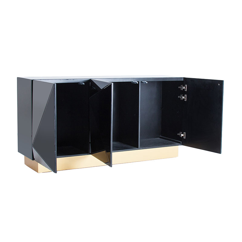 Aparador rectangular ozd, en color oro/negro, de estilo art deco. Fabricado en cristal, combinado con acero.