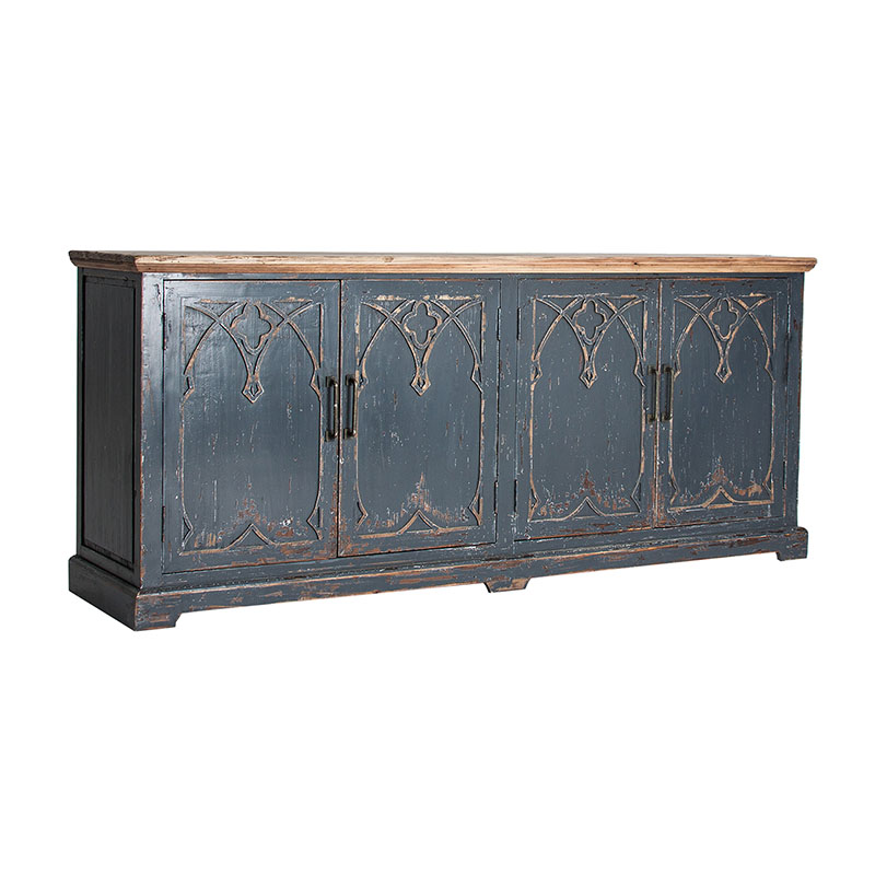 Aparador Suzara de estilo provenzal fabricado en madera de pino en color azul en color natural.