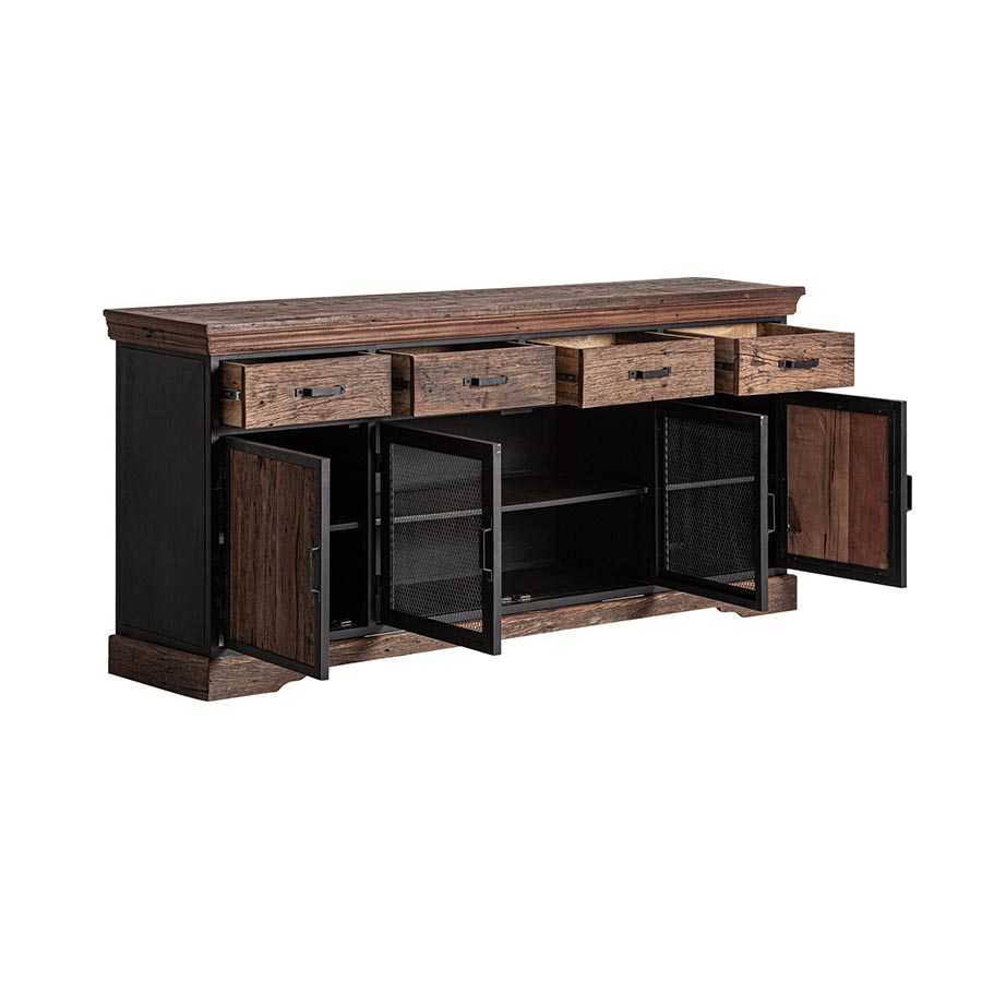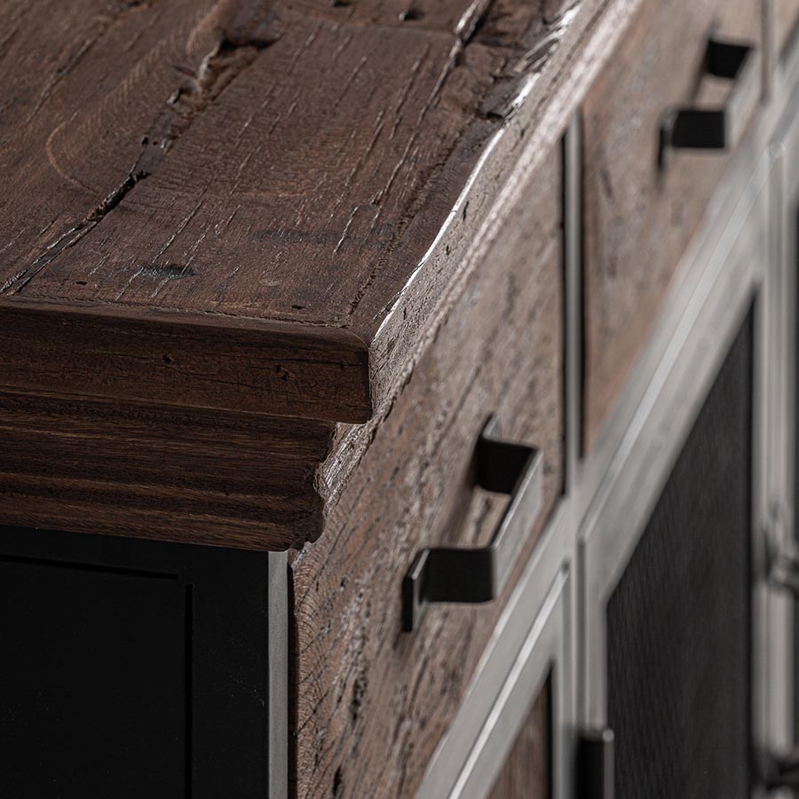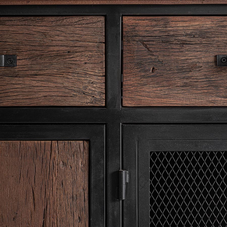 Aparador walding de estilo nórdico fabricado en hierro en color negro combinado con madera recuperada en color marrón.