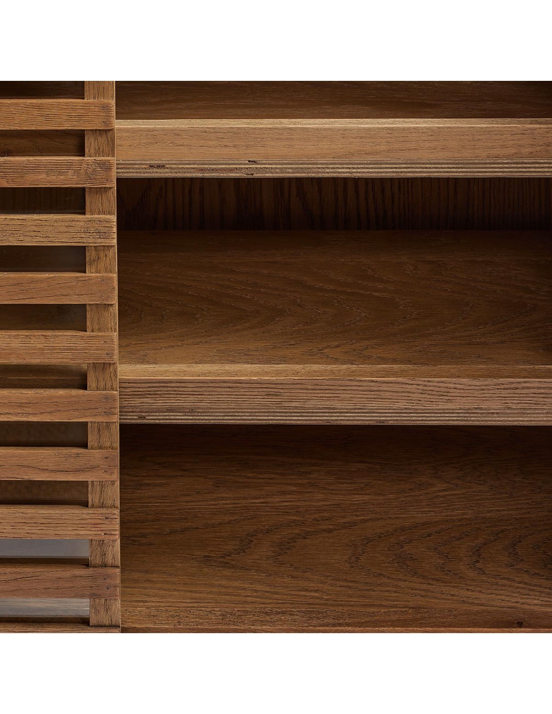 Aparador acabado en madera natural con pata de madera. Puertas de palillería en madera del mismo tono y parte interior de la puerta en cristal transparente. Cuenta con 3 baldas en su interior en las que la primera y tercera son ajustables. Permiten inclinación para usar como zapatero o utilizar rectas para otro tipo de almacenaje. Su estructura y diseño permiten utilizar la pieza como zapatero. Un diseño moderno y ligero a la vez que resistente.