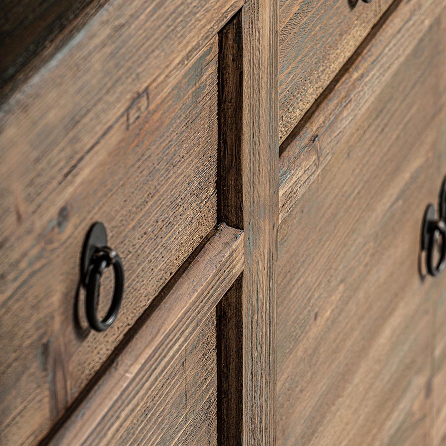 Aparador zeitz de estilo colonial fabricado en madera de pino en color marrón.