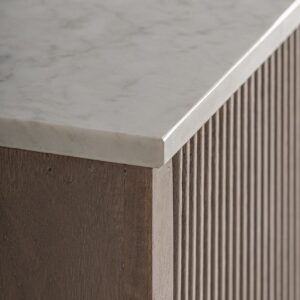 Aparador Zerf de estilo contemporáneo fabricado en madera de mango en color marrón combinado con mármol en color blanco y madera dm en color marrón.
