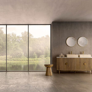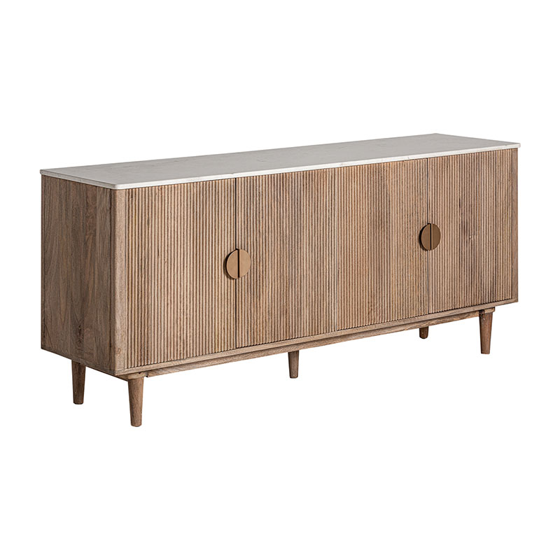 Aparador zerf de estilo contemporáneo fabricado en madera de mango en color marrón combinado con mármol en color blanco y madera dm en color marrón. Producto desmontable.