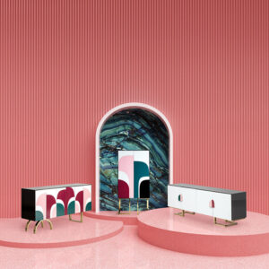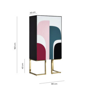 Armario annie, en color multicolor, de estilo art deco. Fabricado en cristal, combinado con hierro y madera dm. Producto desmontable.