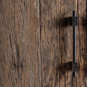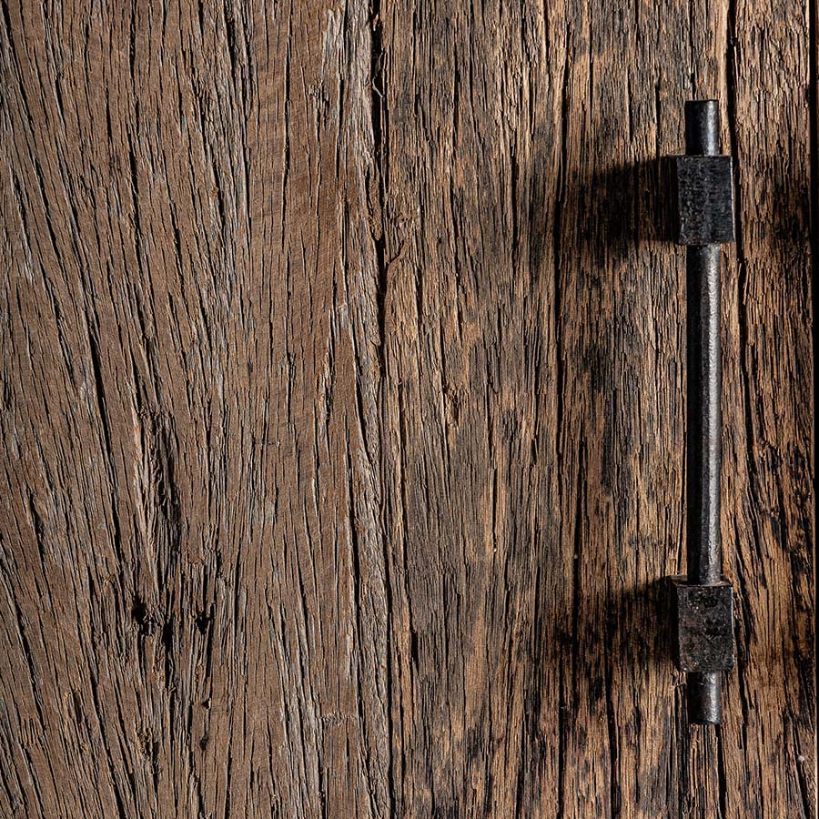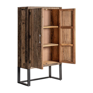 Armario carrik de estilo colonial fabricado en madera recuperada en color marrón combinado con metal.