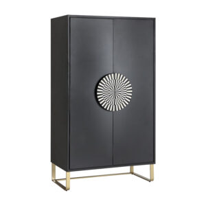 Armario gatsby de estilo art deco fabricado en madera dm en color negro combinado con hueso en color blanco y hierro en color oro. Producto desmontable.