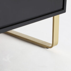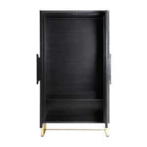 Armario Valbruna de estilo art deco fabricado en madera dm en color oro con acabado revestimiento de latón combinado con hierro en color negro con acabado revestimiento en polvo negro. Producto desmontable.