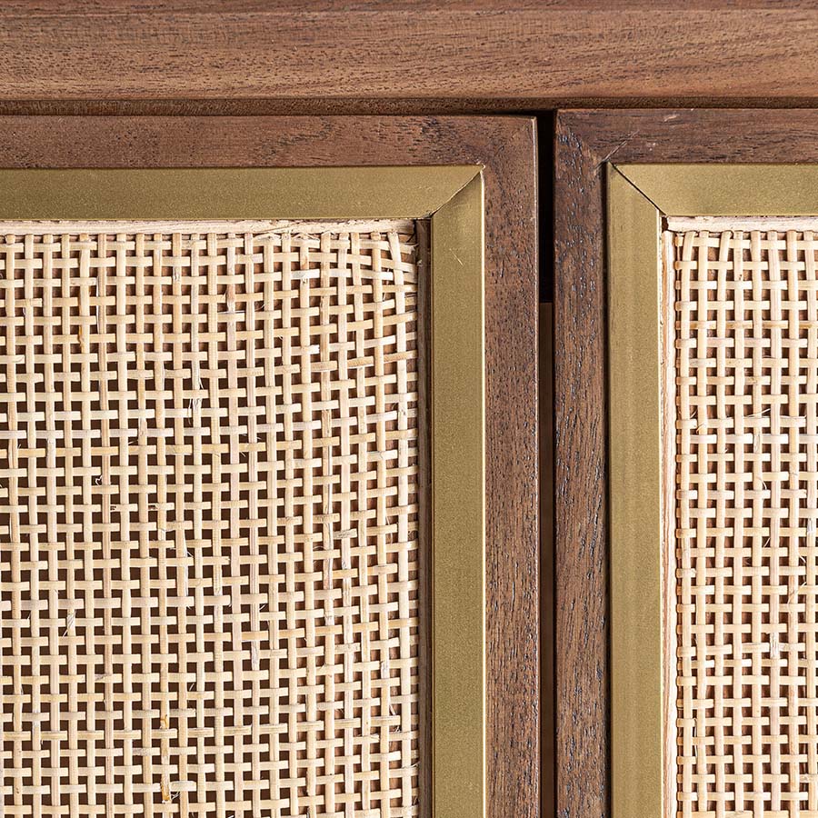 Armario gondorf de estilo nórdico fabricado en madera de mango en color marrón combinado con latón en color oro y ratán. Producto desmontable.