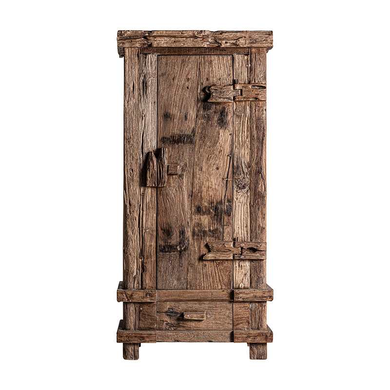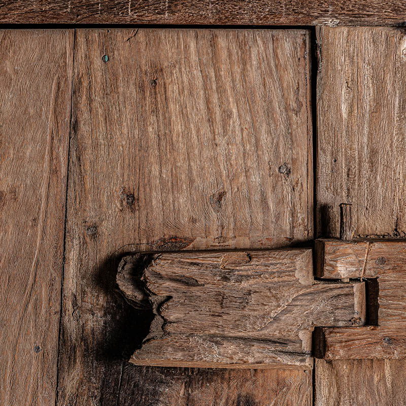 Armario loge de estilo étnico fabricado en madera de teka en color marrón con acabado envejecido.