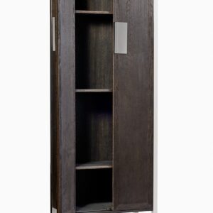 Armario de madera de color negro con acero. Este armario te aportará elegancia, pureza y luminosidad a pesar de su color. Armario ideal y novedoso, con tiradores de acero. En su interior, se compone de tres baldas, lo que te permite guardar y almacenar las cosas que más desees, de una manera ordenada y práctica.