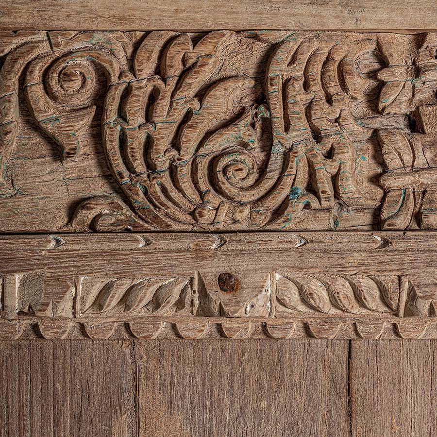 Armario socken de estilo colonial fabricado en madera de teka en color marrón combinado con hierro en color negro.