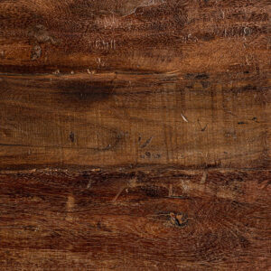Banco breive de estilo rústico fabricado en madera de pino reciclado en color marrón con acabado envejecido.