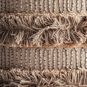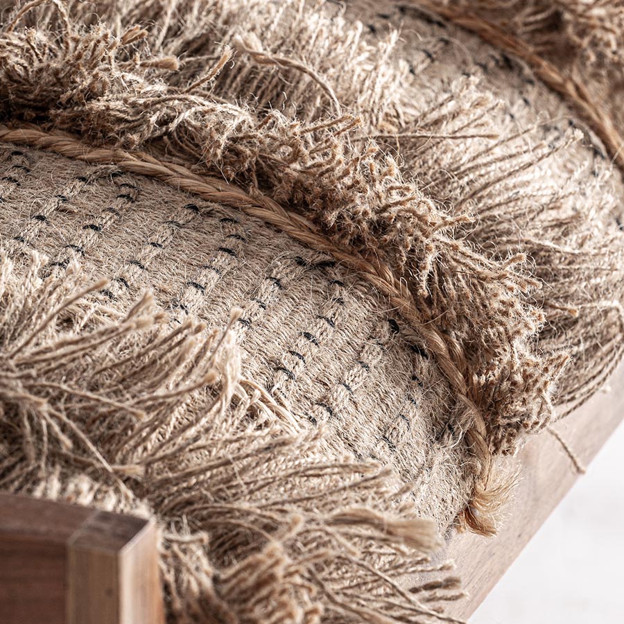 Banco Tassarolo de estilo étnico fabricado en yute en color marrón combinado con madera de mango. Producto desmontable.