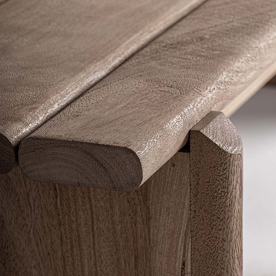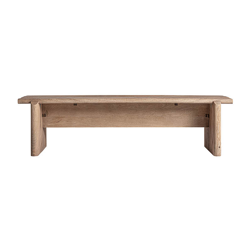 Banco Jacquard de estilo contemporáneo fabricado en madera de mango en color marrón claro.