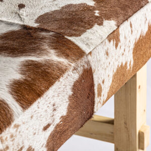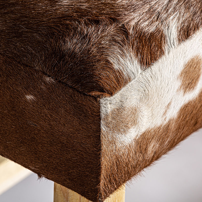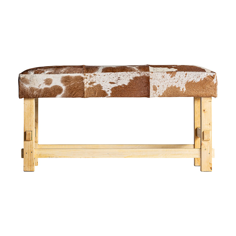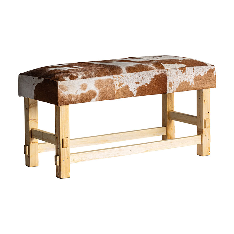 Banco kenosha, en color marrón/beige, de estilo nórdico. Fabricado en cuero, combinado con madera de mango.