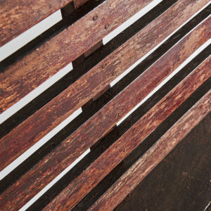 Banco lizhai, en color marrón envejecido, de estilo oriental. Fabricado en madera de olmo.