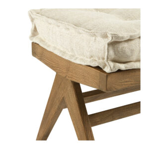 Este banco de inspiración vintage ha sido renovado con estilo y modernidad. Su elegante cojín con capitoné y su acabado en roble patinado aportarán un toque de suavidad a su interior.